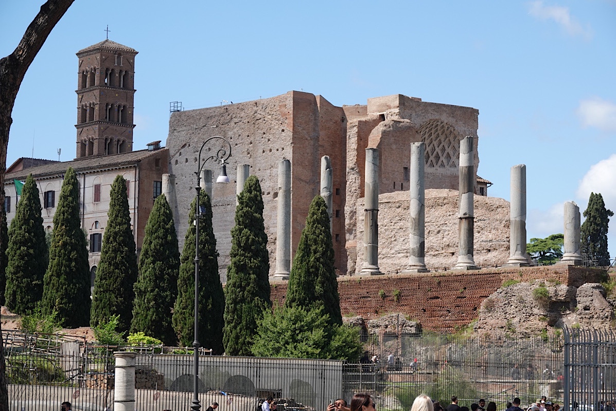 The ruins of the Temple of Venus and Rome, located beside the colosseum.