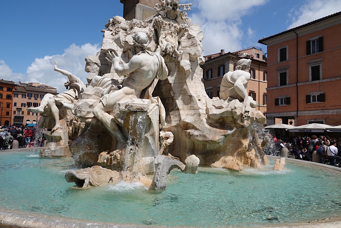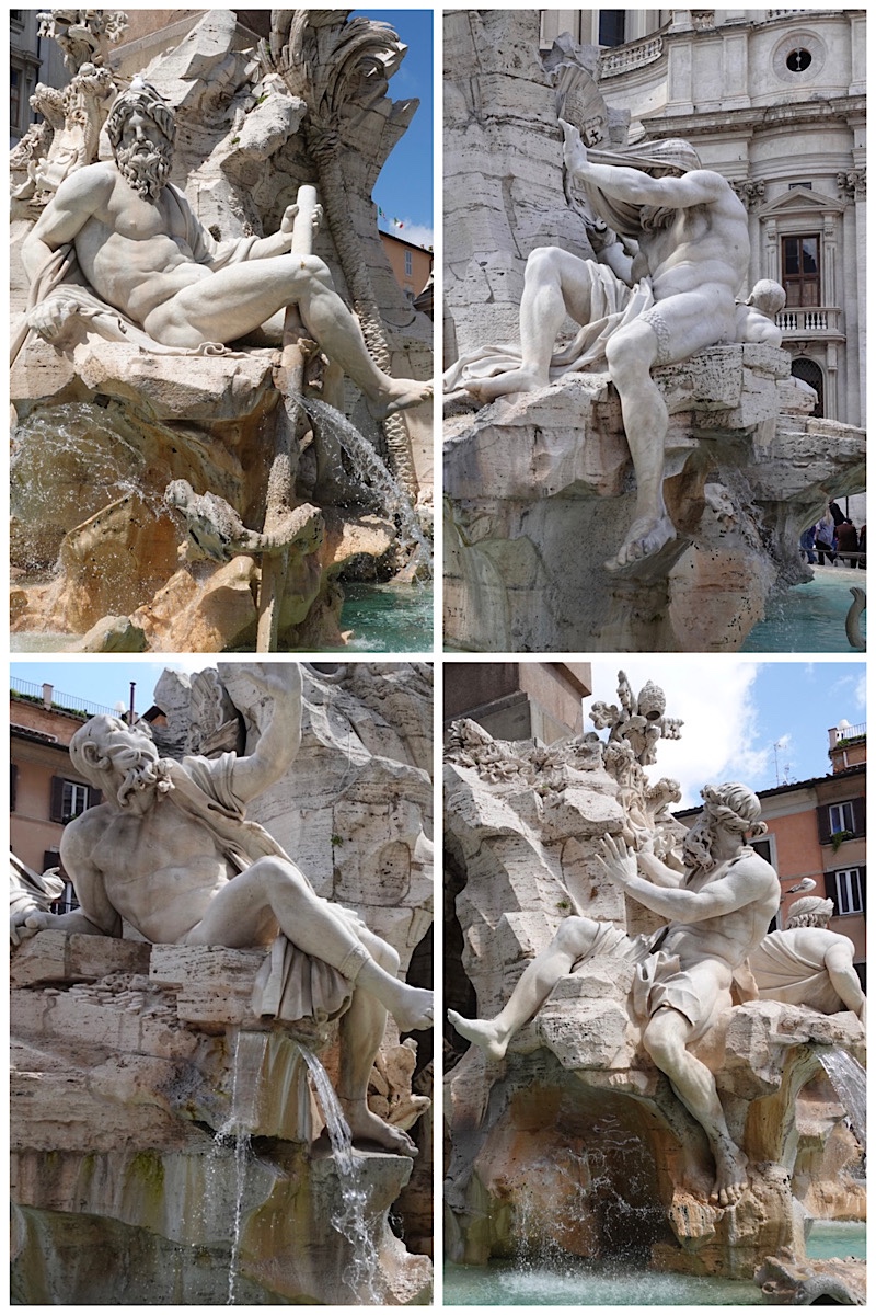 Bernini’s Fountain of the Four Rivers (the Fiumi Fountain) in the Piazza Navona. The Ganges representing Asia, the Nile representing Africa, the Rio Plata representing the Americas, and the Danube representing Europe are depicted at the four corners of the fountain. (Ted and I only need to see the Ganges to complete the fountain!) The fountain is in front of what was Pope Innocent X’s family palace, and contains yet another of Rome’s Egyptian obelisks.
