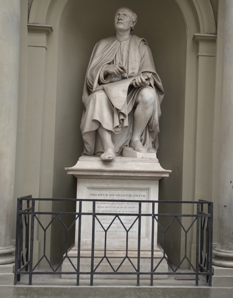 The cathedral was begun in 1296 in the Gothic style, designed by Arnolfo di Cambio. Work continued on it over a period of 140 years, completed in 1436. The dome was engineered by Filippo Brunelleschi. Across the street from the dome is a statue of Bruneschelli, looking directly up at the glorious result of his work.