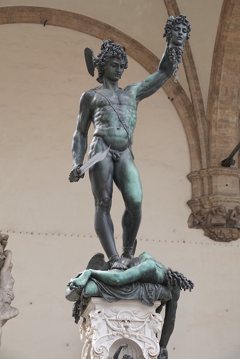 Then there is Cellini’s Perseus, done between 1545 and 1554, the first major bronze statue (it is 3.2 meters tall) cast in a single piece using the “lost wax” method. These statues, commissioned by the Medici, are all about power, reinforcing their own status in Florence.