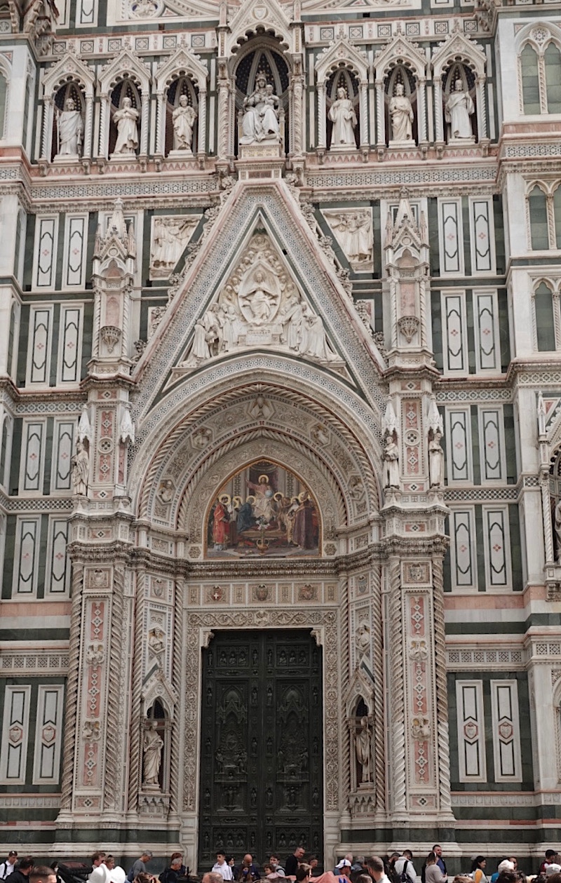 The beauty of Florence is quite overwhelming. Ted’s hundreds of photos today each captured something magical, and yet photos (no matter how good) really cannot duplicate the experience of standing just feet from a 500 year old statue and seeing the sheen in the marble, or looking up at a soaring 60 foot tall fresco painted in the early 1300’s and marvelling at the colours.