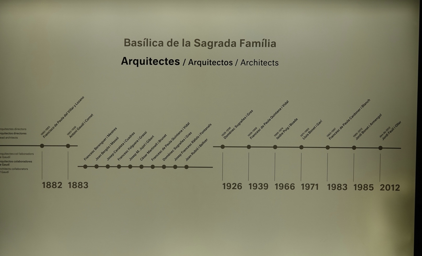 Gaudi’s most famous structure, although one he did not finish (he began it in 1882, but died in 1926) is the famous Sagrada Familia, which was slated to be completed in 2026 in time for the 100th anniversary of his death, but likely will not be, since the third facade, “Glory”, has not even been started, and there are multiple apartment buildings which would have to be expropriated in order to complete that facade and the planned grand entranceway and staircase.