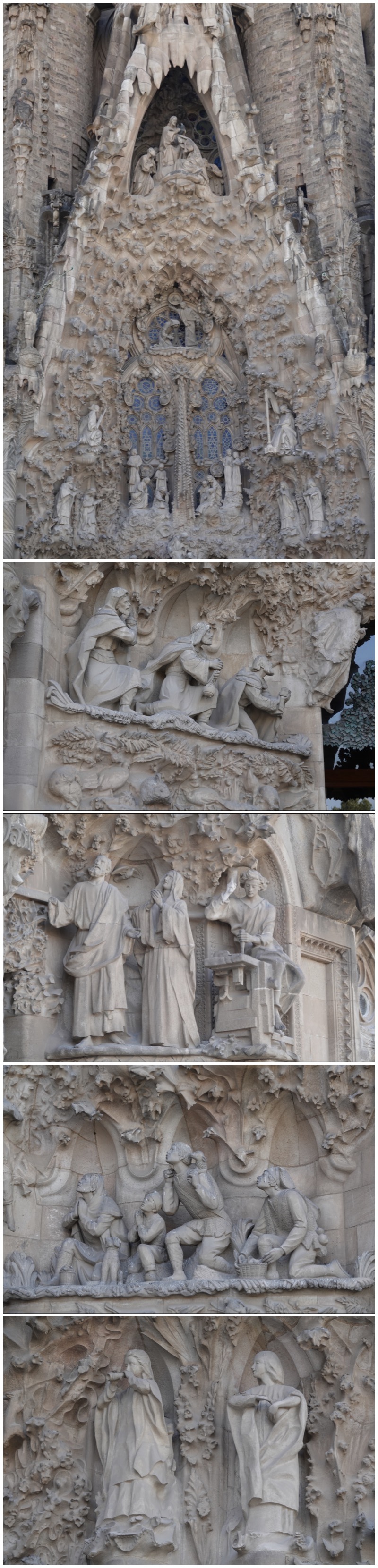 The “Birth” (Nativity) facade, which is the only one actually designed by Gaudi, seems to be melting or dripping – I found it quite disconcerting.