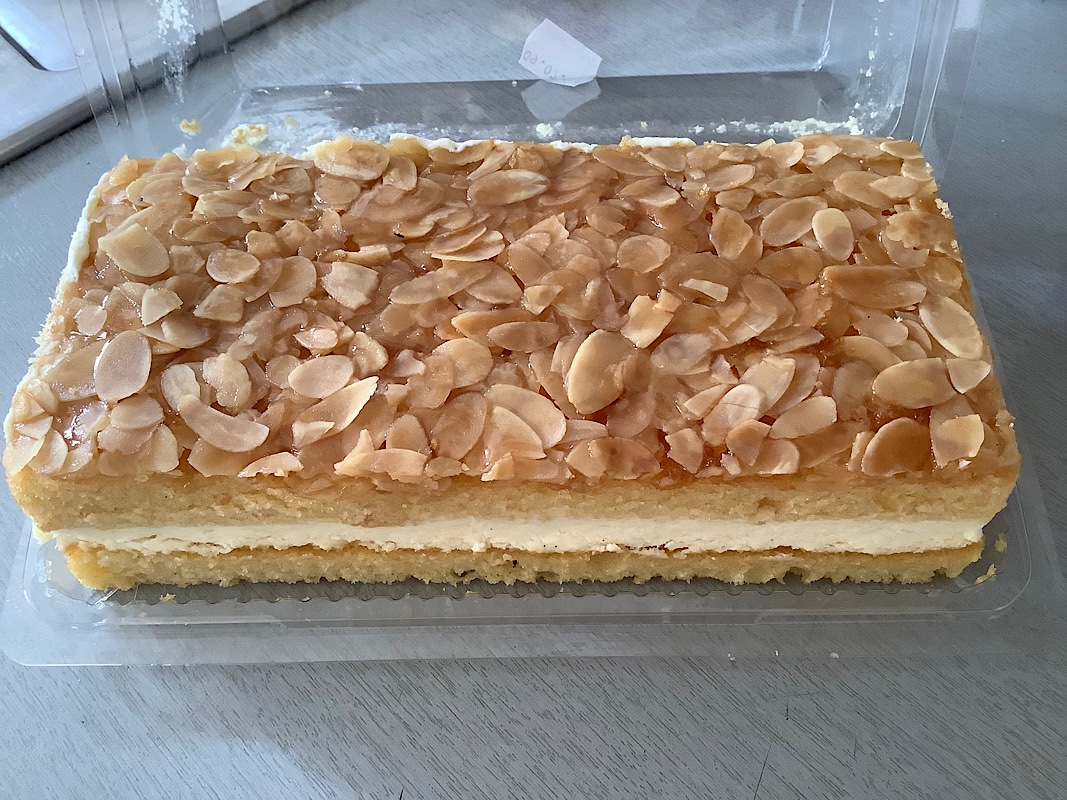 Mmmmmm… yeast cake, plenty of whipped cream, and honey-glazed almond slices. I knew it wouldn’t rival what my Aunt Erika used to bake, but it was still delicious (maybe the best commercially made one I’ve had!)