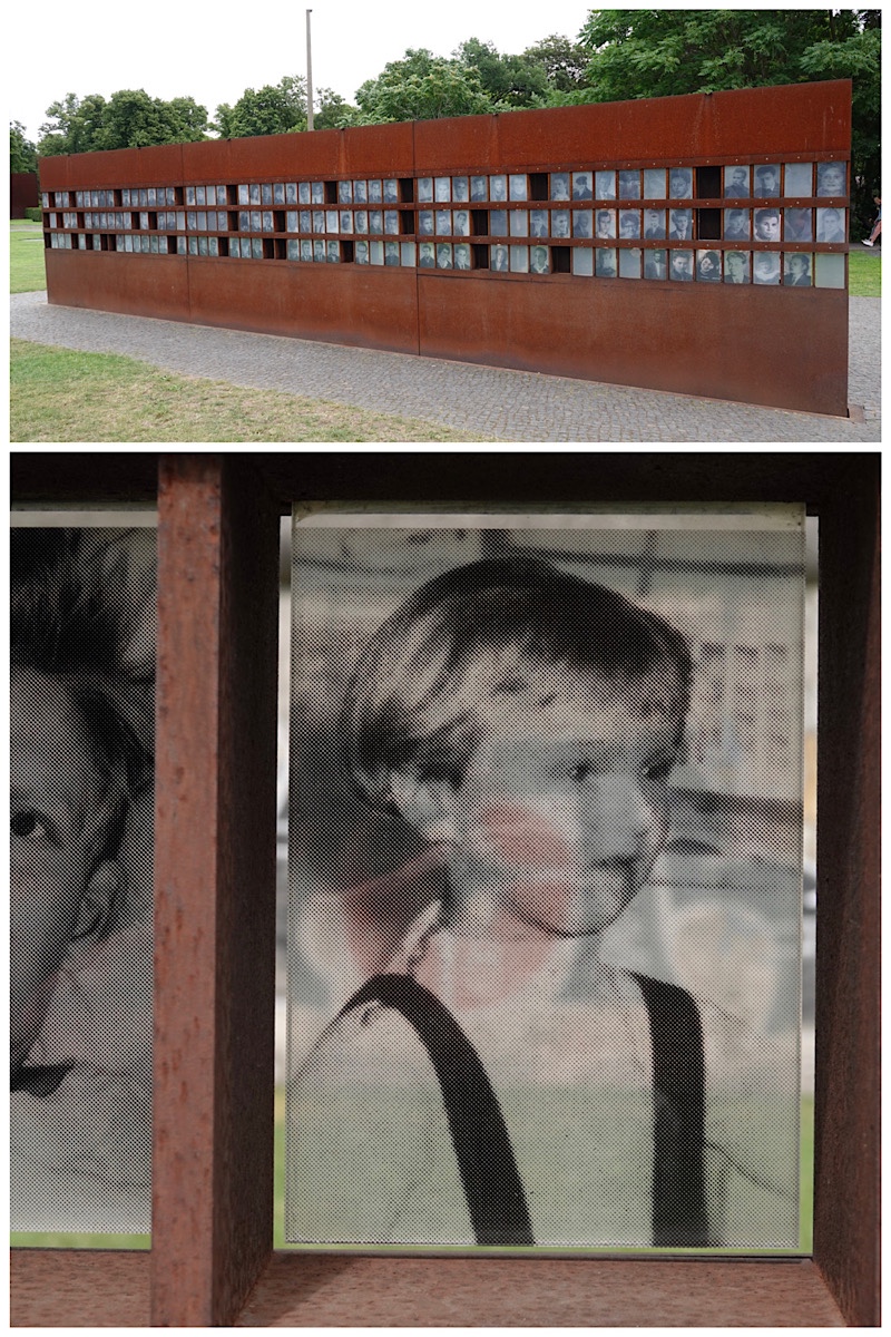 Between 1961 and 1989, at least 140 people were killed or died at the Wall in connection with the GDR border regime, including 101 people who were shot, accidentally killed, or killed themselves when they were caught trying to make it over the Wall; 131 of them are remembered via black & white photo portraits printed onto glass and accompanied by their birth and death dates on the memorial called The Window of Remembrance.