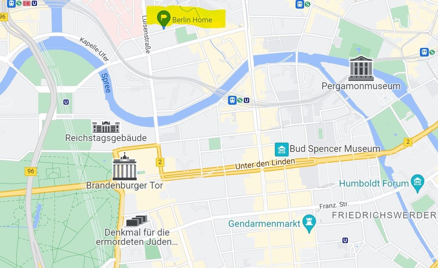 Our location (“Berlin Home”) on a current map with no dividing wall.