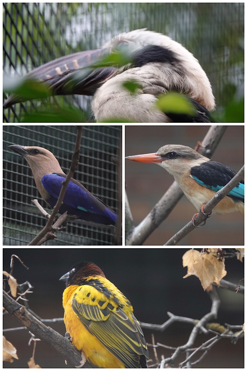 Centre R:brown-hooded kingfisher. Bottom: village weaver.
