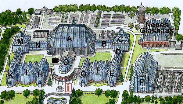Schematic from the Garden’s website showing the 17 exhibition greenhouses.