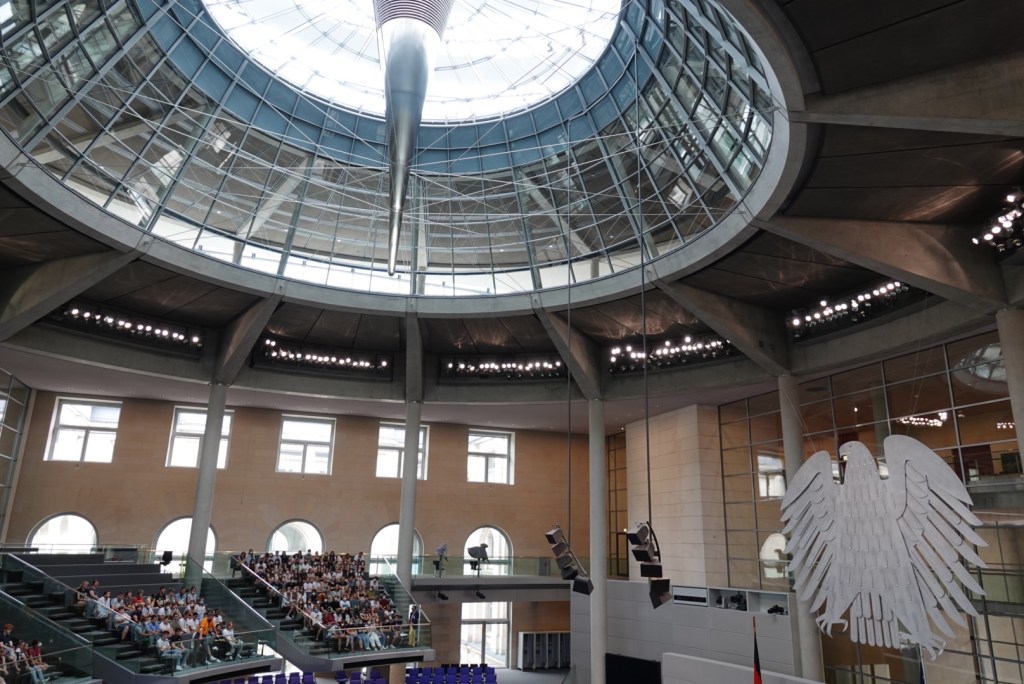 And here’s where it all happens: over 750 elected representatives, plus the 16 state premiers, the president and chancellor, all watched over by journalists and members of the public.