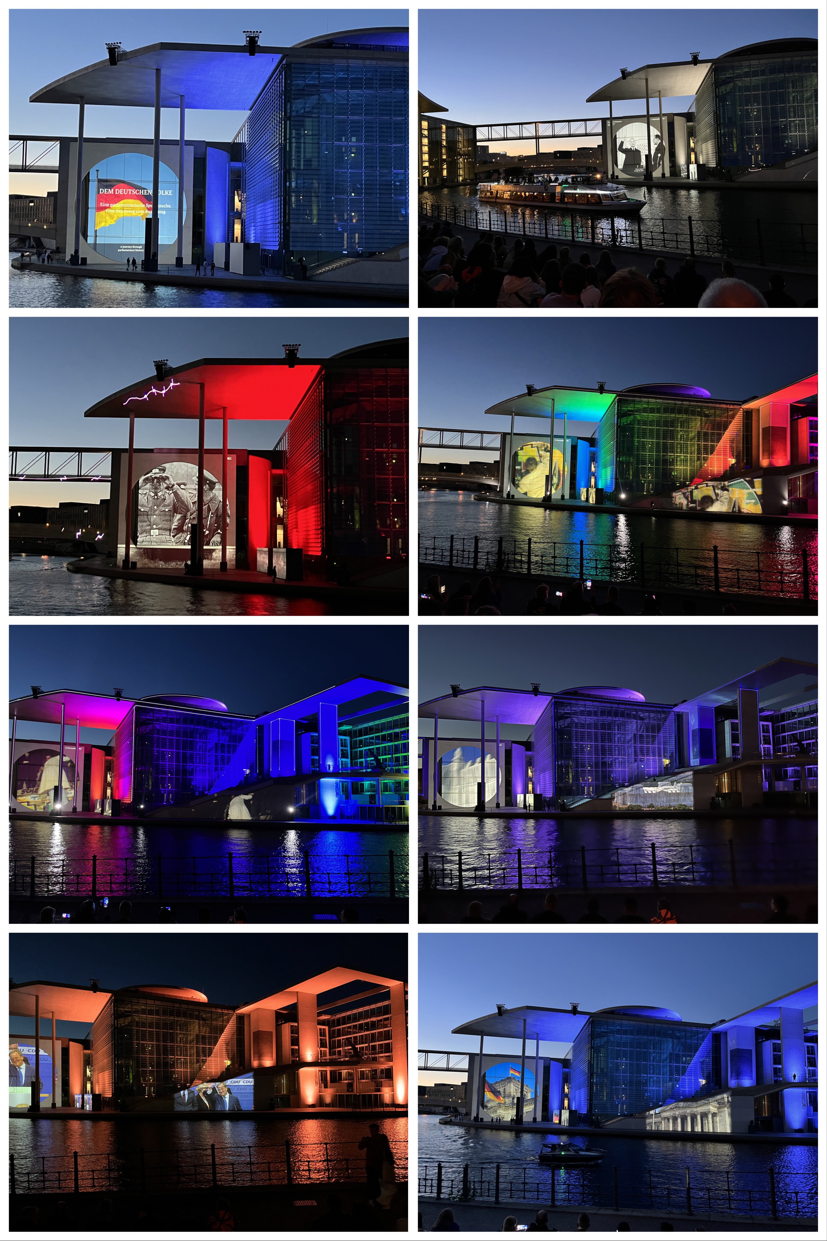 Since it was only 9 p.m. and still light outside, we decided to take in the Reichstag multimedia history show that runs each evening at dusk (10 p.m.) The three of us had seen the 2016 version when we were together last; the show is still as impressive, but has been significantly updated to include current events.