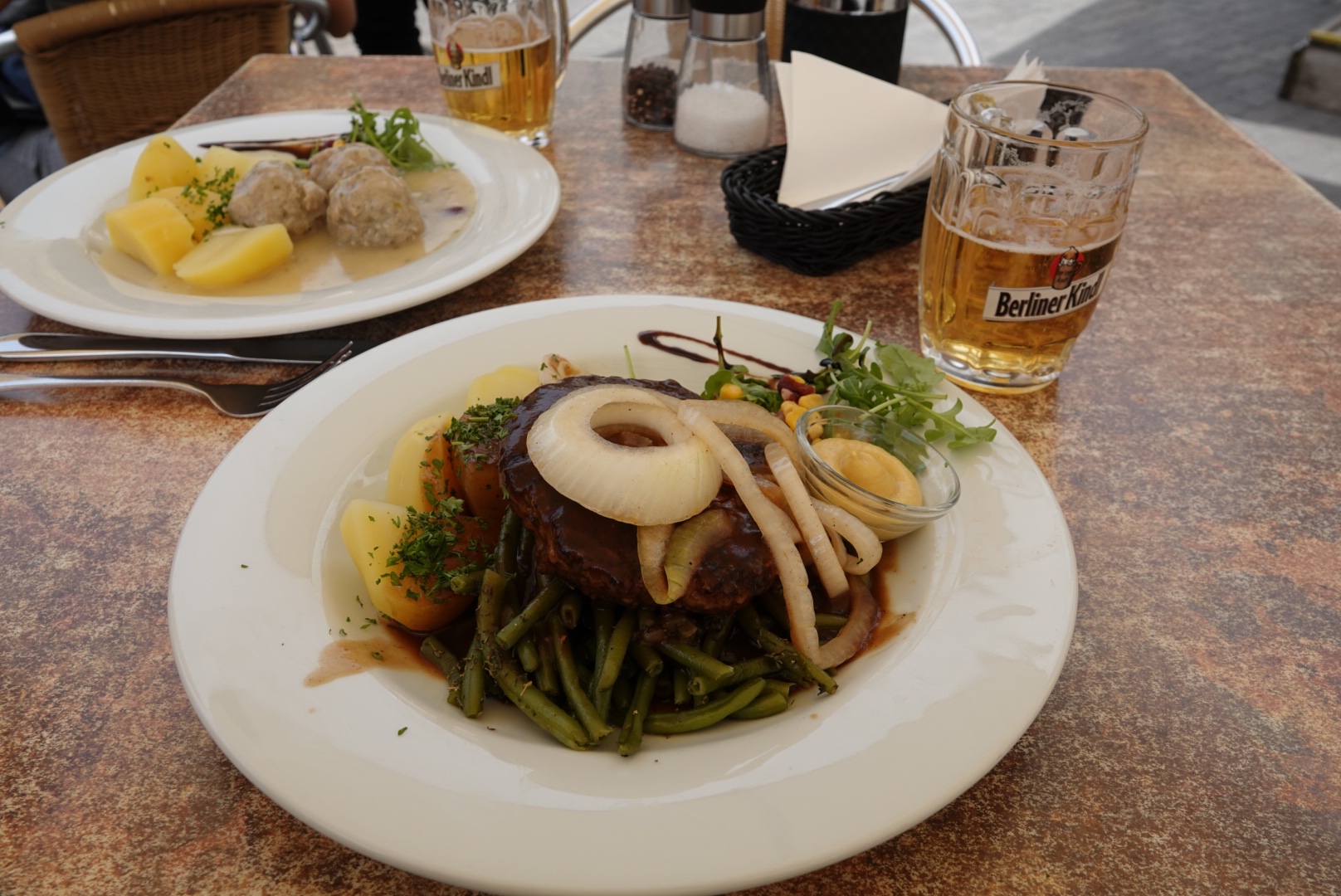 Anyway, researching all of those stats was a result of me thinking about arts funding. If you stayed the course, you might be wondering what kind of sustenance fuels my single-finger typing. Today we ate lunch outside beside the Spree, opposite the Museum Island, at a restaurant serving typical Berlin specialties.
