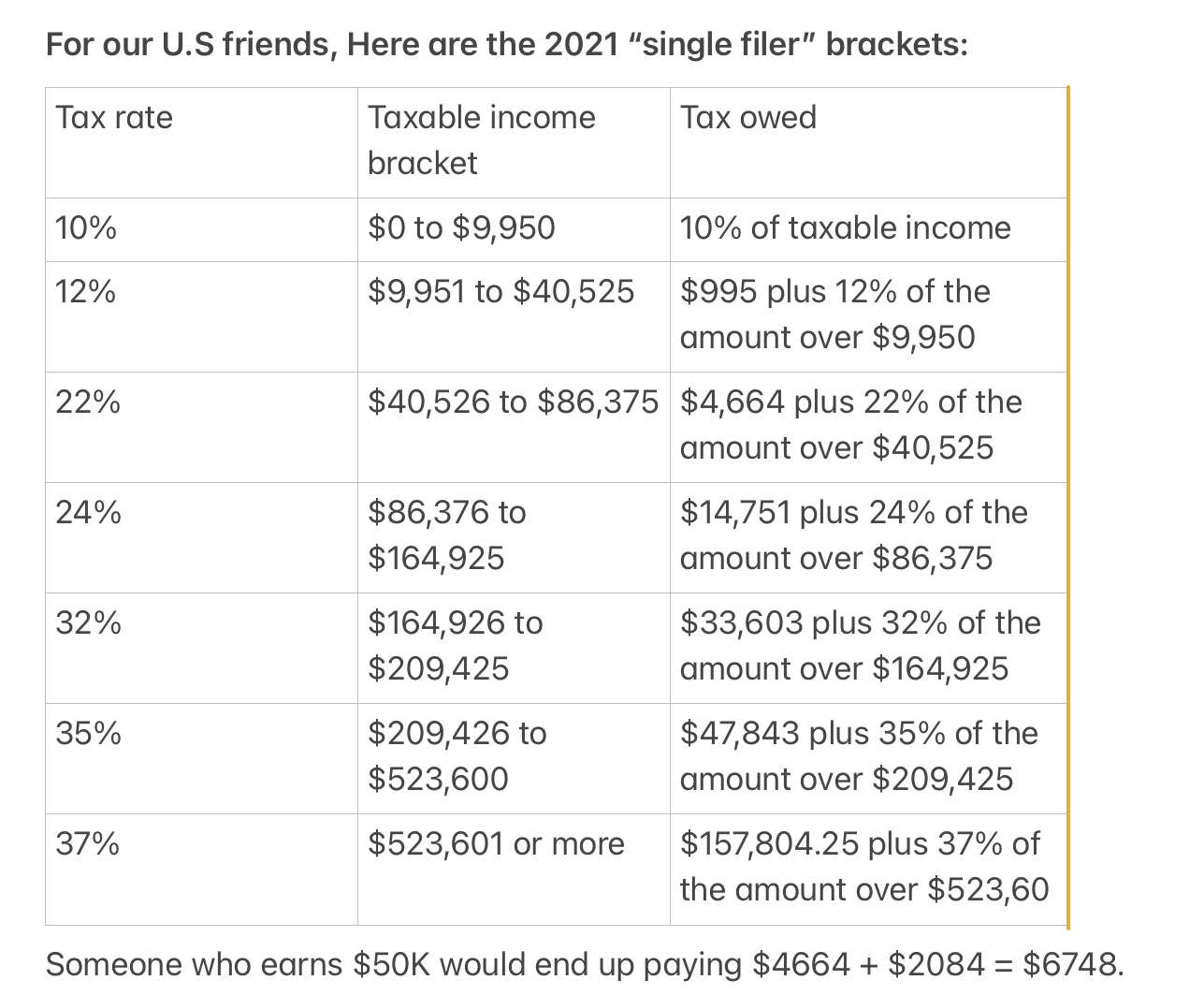 Tax comparison for a 50K net income: CANADA $7554. GERMANY $10,022. USA $6748.