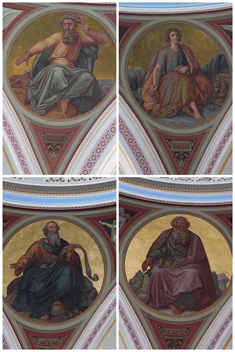 For reasons of stability, corner towers had to be added, which are crowned by blessing and praying angels and serve as bell towers.