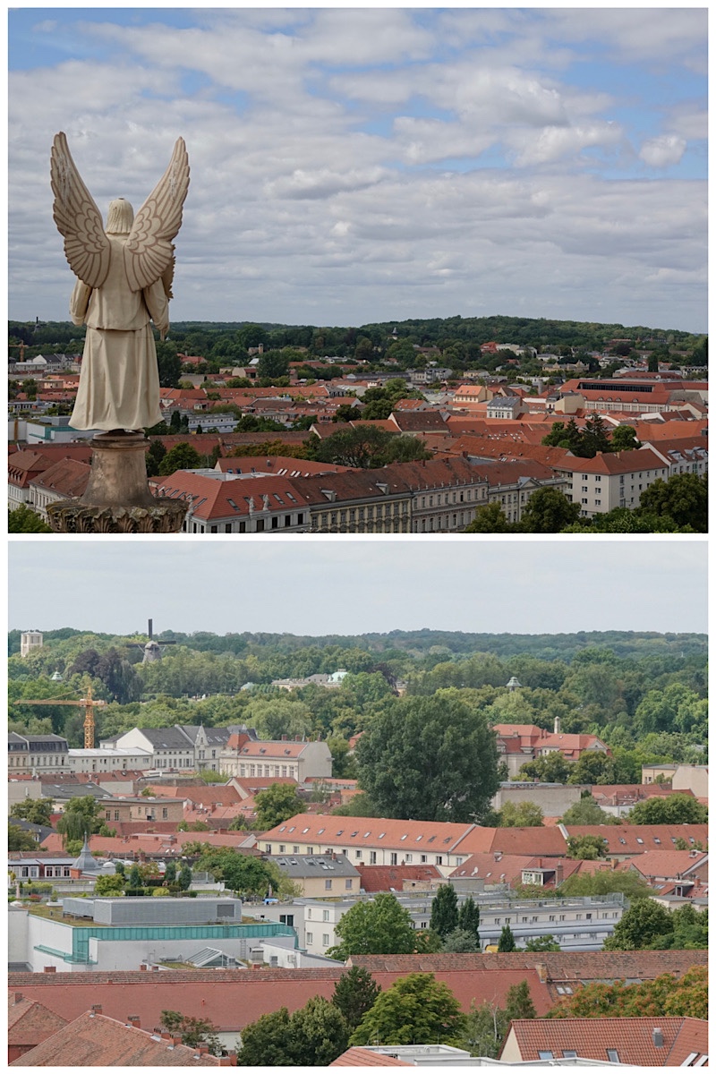 Bottom: looking toward Sanssouci Park. Note the park’s old windmill on the left. You can see the dome of Sanssouci Palace in the centre distance.