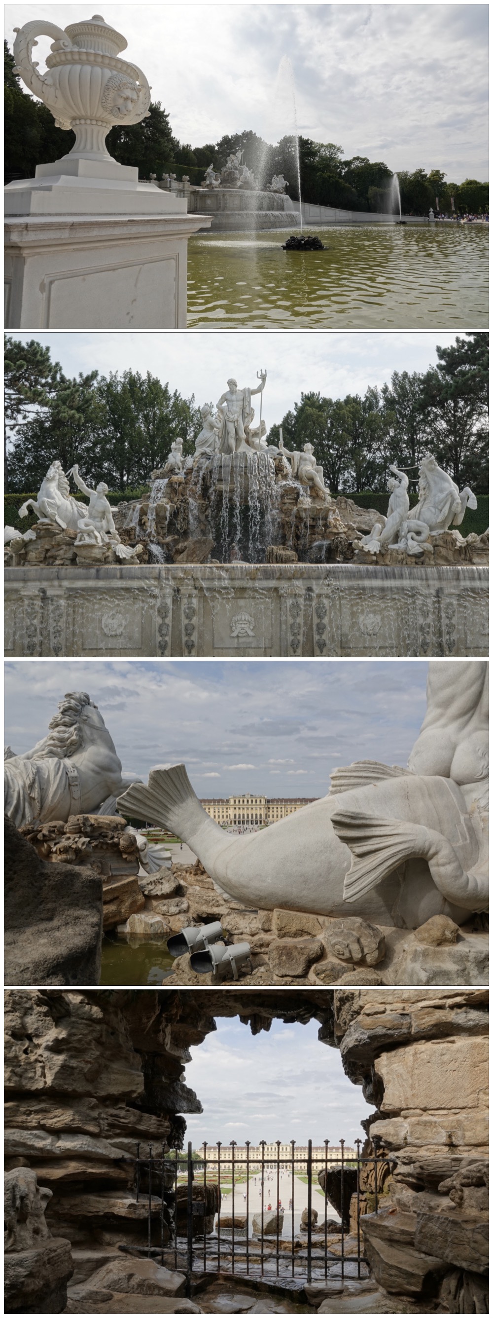 One of our favourite features on the grounds is the Neptune Fountain at the base of the baroque garden and the bottom of the Gloriette hill. The water got turned off while we were there, but fortunately not before Ted captured some wonderful images.