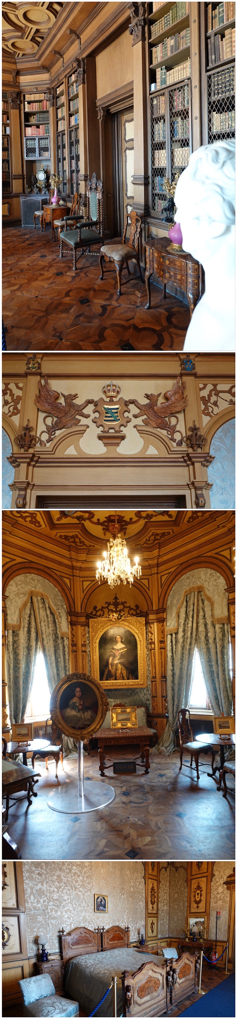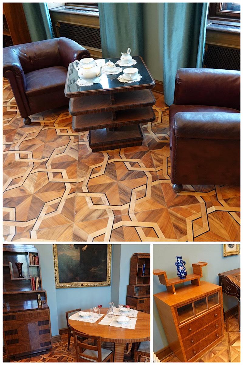 There are a few upstairs personal rooms that were updated in the Art Deco style after the castle became the residence of Prince Amedeo, 3rd Duke of Aosta, captain of the first Italian air division stationed in Gorizia, and his wife Princess Anne of Orléans, who lived there continuously till 1937 when the duke was appointed viceroy of Ethiopia. I’m generally a big fan of the clean lines, interesting wood grains, and artistic shapes of Art Deco furniture, but after all the stunning woodwork in the Habsburg rooms these felt a little underwhelming.