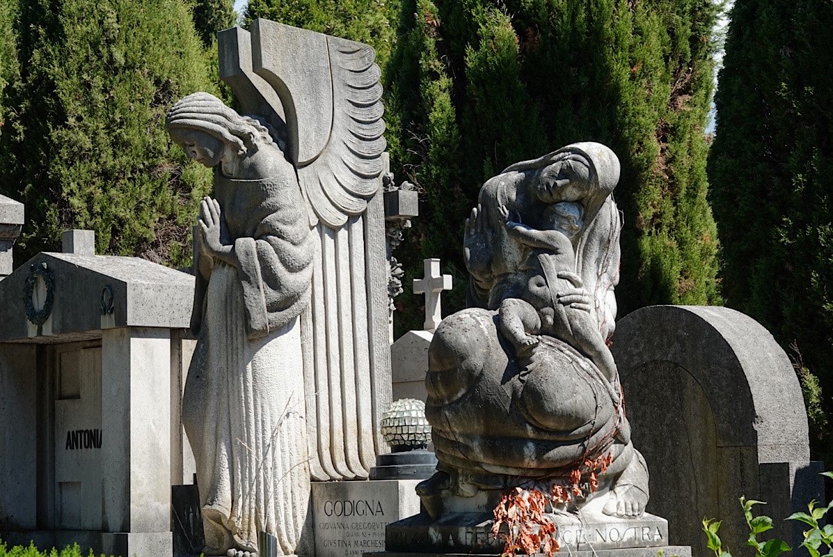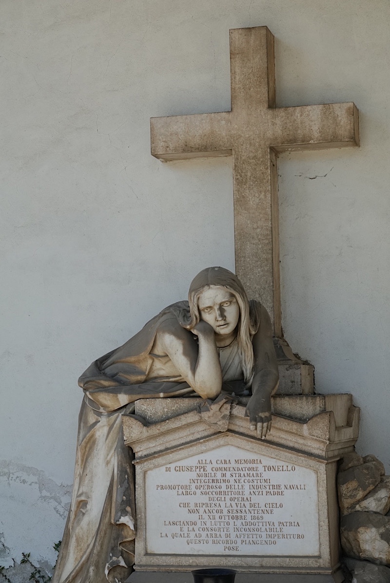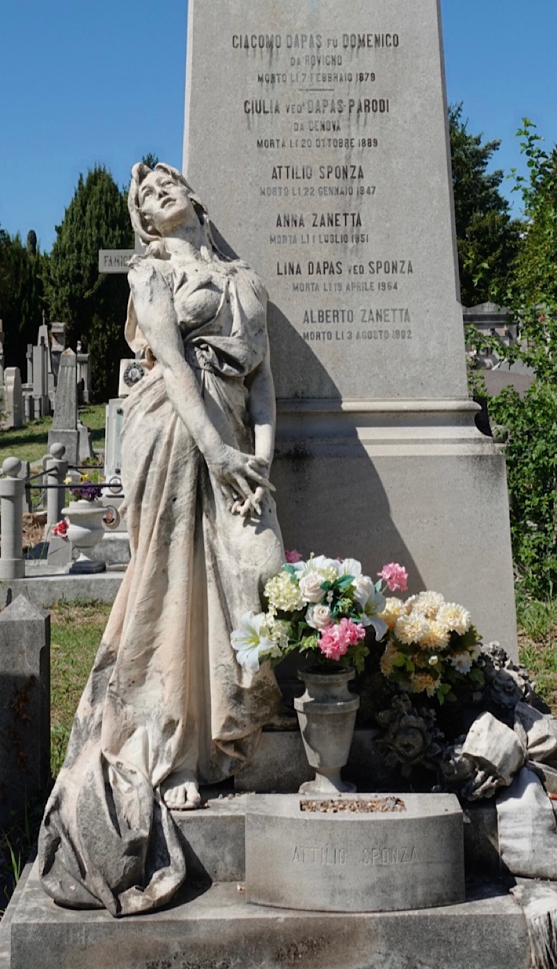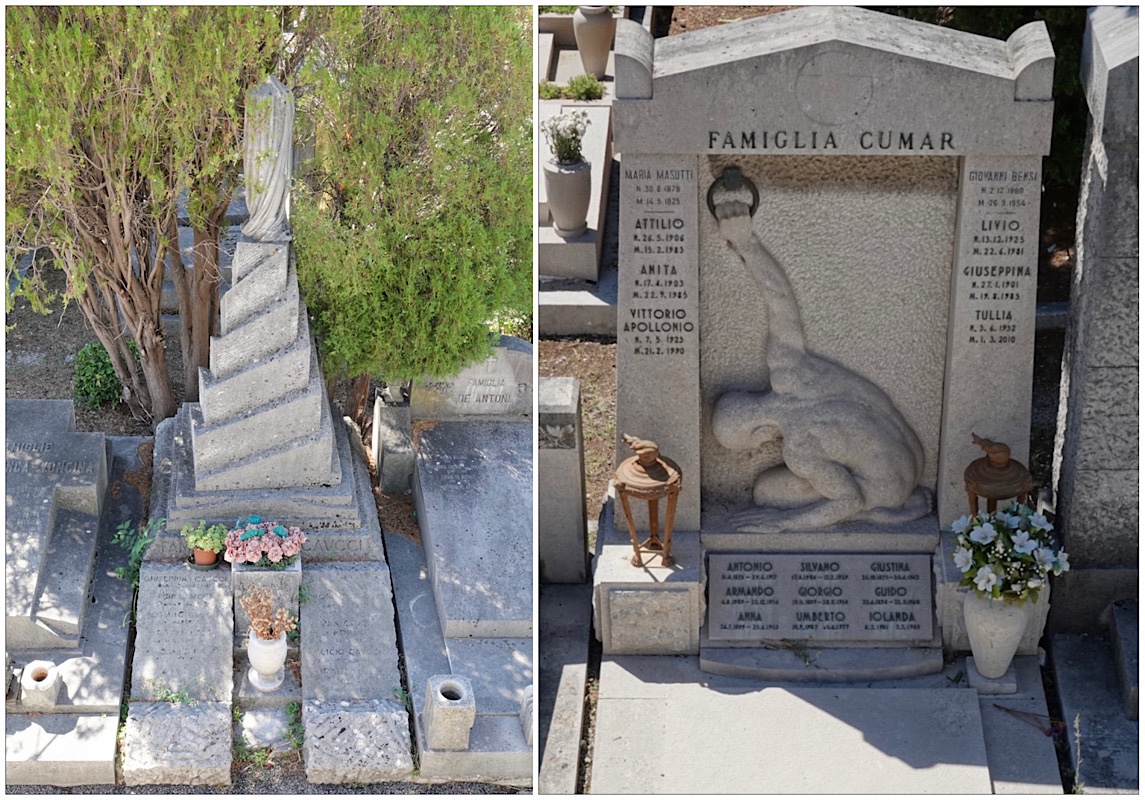 We’ve walked through and taken photos in fabulous cemeteries in North America (Richmond Virginia’s Hollywood is one of my favourites), in Germany, Austria (Salzburg’s are magnificent), England, Scotland, and Jerusalem, but today was our first foray into an Italian Cemetery: the sprawling Cimitero di Sant’Anna, with its Catholic, Greek Orthodox, Serbian, British, Jewish, and Ex-military sections.