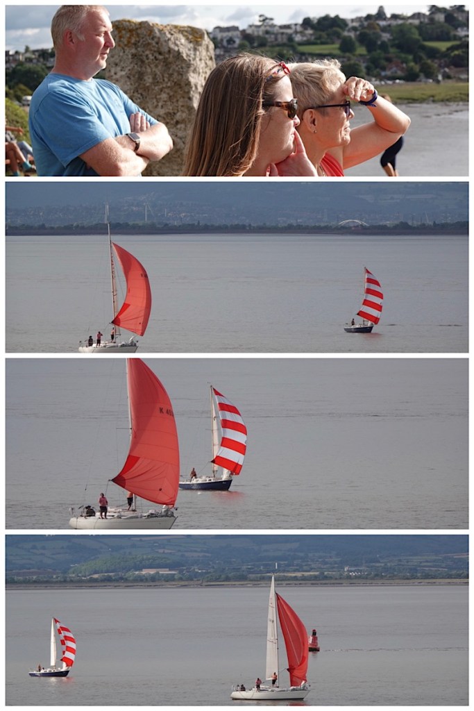 We got an unexpected treat, arriving at the end point of a sailing regatta and getting to watch the finish! Racing in tidal waters is completely different that racing on a lake; Bert, a sailor herself, explained that while there is an official “start time”, not all boats actually start simultaneously. Each sailor has to calculate the effect of the tide on their particular boat’s size and weight, so that they are not fighting the tide at any point in the race… or getting stranded in low water.