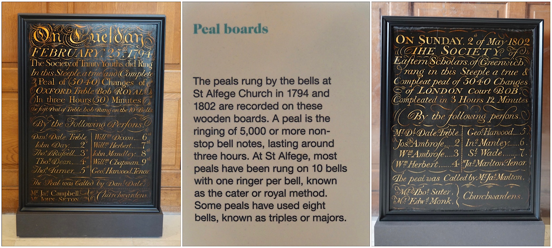 There was something else we’ve never seen before: “Peal Boards”. Can you imagine 3 hours of 10 bells chiming over 5000 times? Wow!!