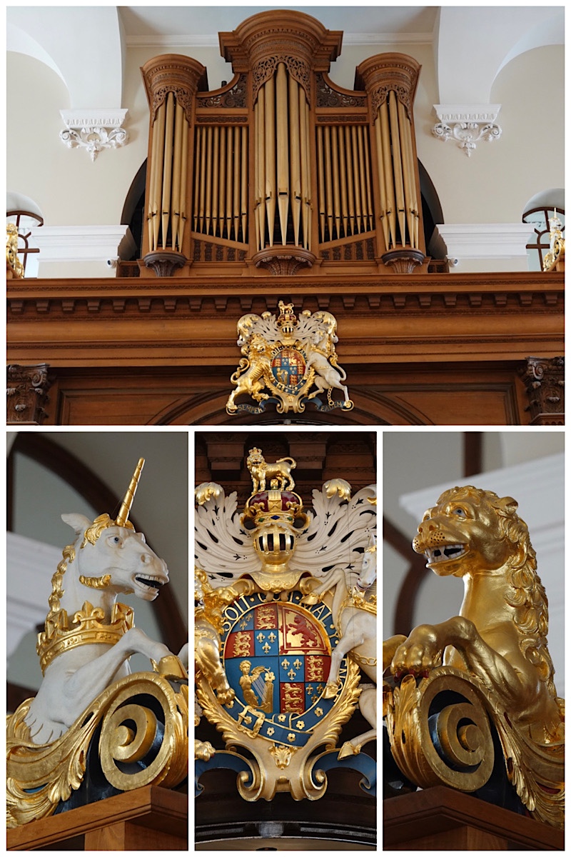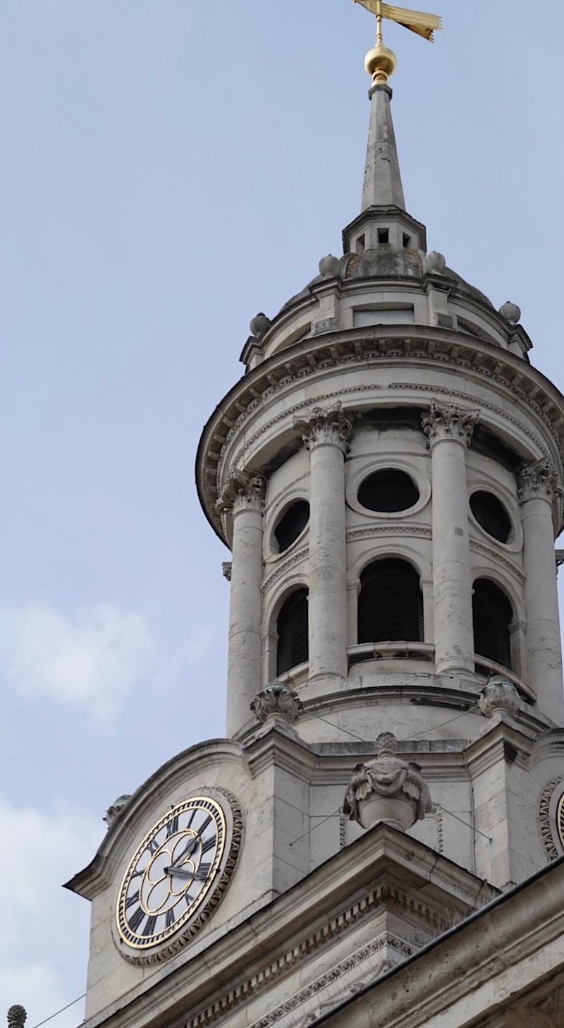 The first church was built sometime after Alfege’s martyrdom. The second was built in the 13th century; its roof collapsed in 1710 during a storm, and since its foundations had been weakened by all the burials in and around it, an entire new church – except for the mediaeval tower – was built. The tower had to wait a few more years. Budget problems happened in the 18th century too. Since then, the church was again partially rebuilt between 1946 and 1953, to repair damage done in WWII in 1941, but the repairs remained true to the 1710 construction.
