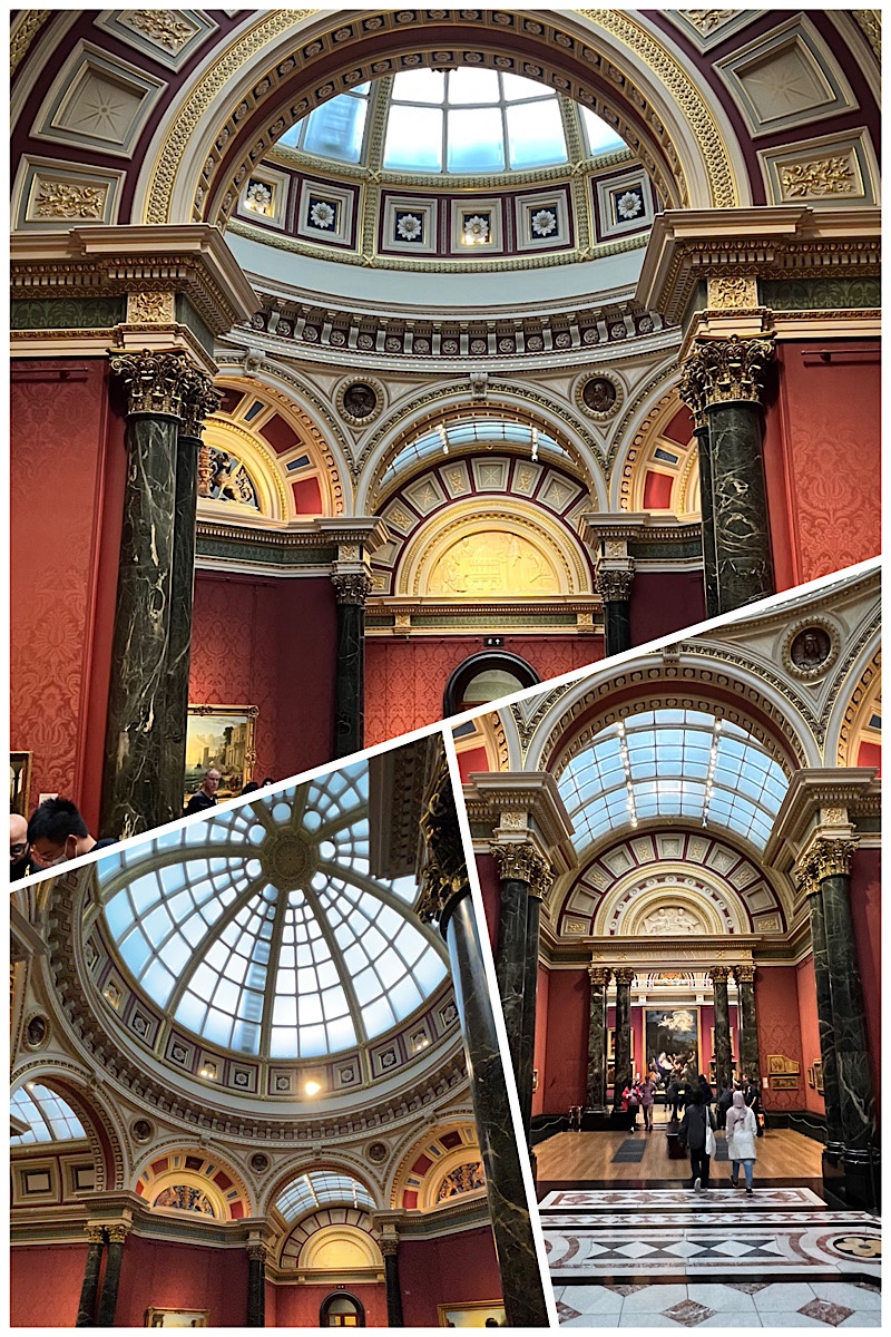 The galleries themselves are works of art, with domed skylights, marble floors, sculpted marble pillars, and vibrant colours that gorgeously highlight the works of art hung on them.