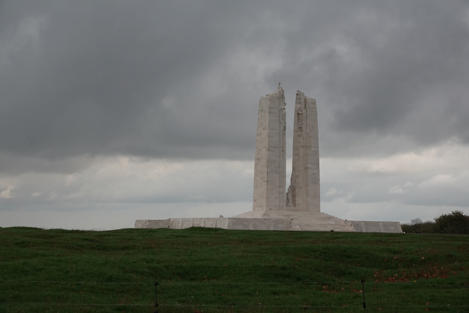 En route to Vimy, we drove through vast areas of lush, flat green farmland in Belgium. “Flat” was important, because that’s why the Germans chose to march through the country, as the path of least physical resistance; the ferocity of resistance of the vastly outnumbered Belgian army and people significantly slowed but could not ultimately prevent the Germans from reaching France. It did, however, delay them enough that instead of completing their Western campaign and then turning to the east and Russia, they ended up having to fight simultaneously on both fronts.