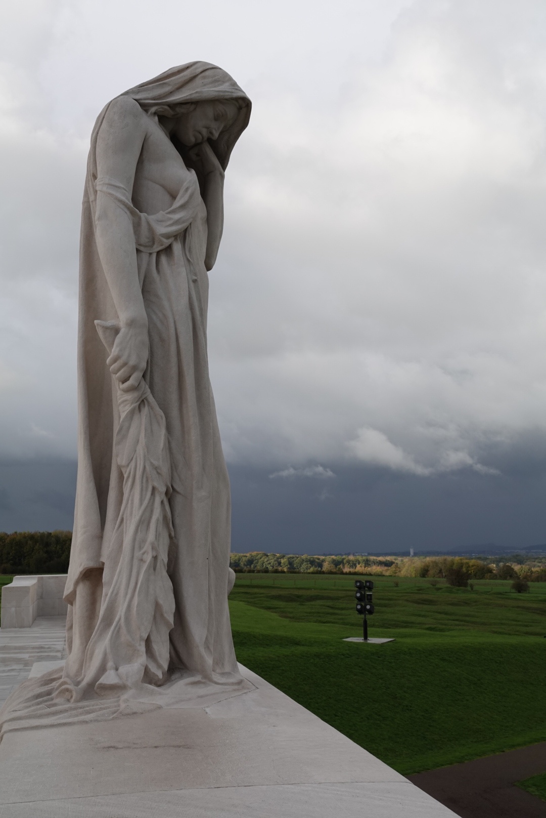 The fighting here went on for years, leading up to the April 1917 battle in which the Canadians took the ridge, and the land itself bears eternal mute witness. I found myself on the verge of tears as we approached the 250 acres that are now actually part of Canada, gifted by the French after the war. The landscape is now treed and green, but the rolling “hills” are shell and mine craters – the sheer number of them is almost unimaginable – and all the trees date from after the war.