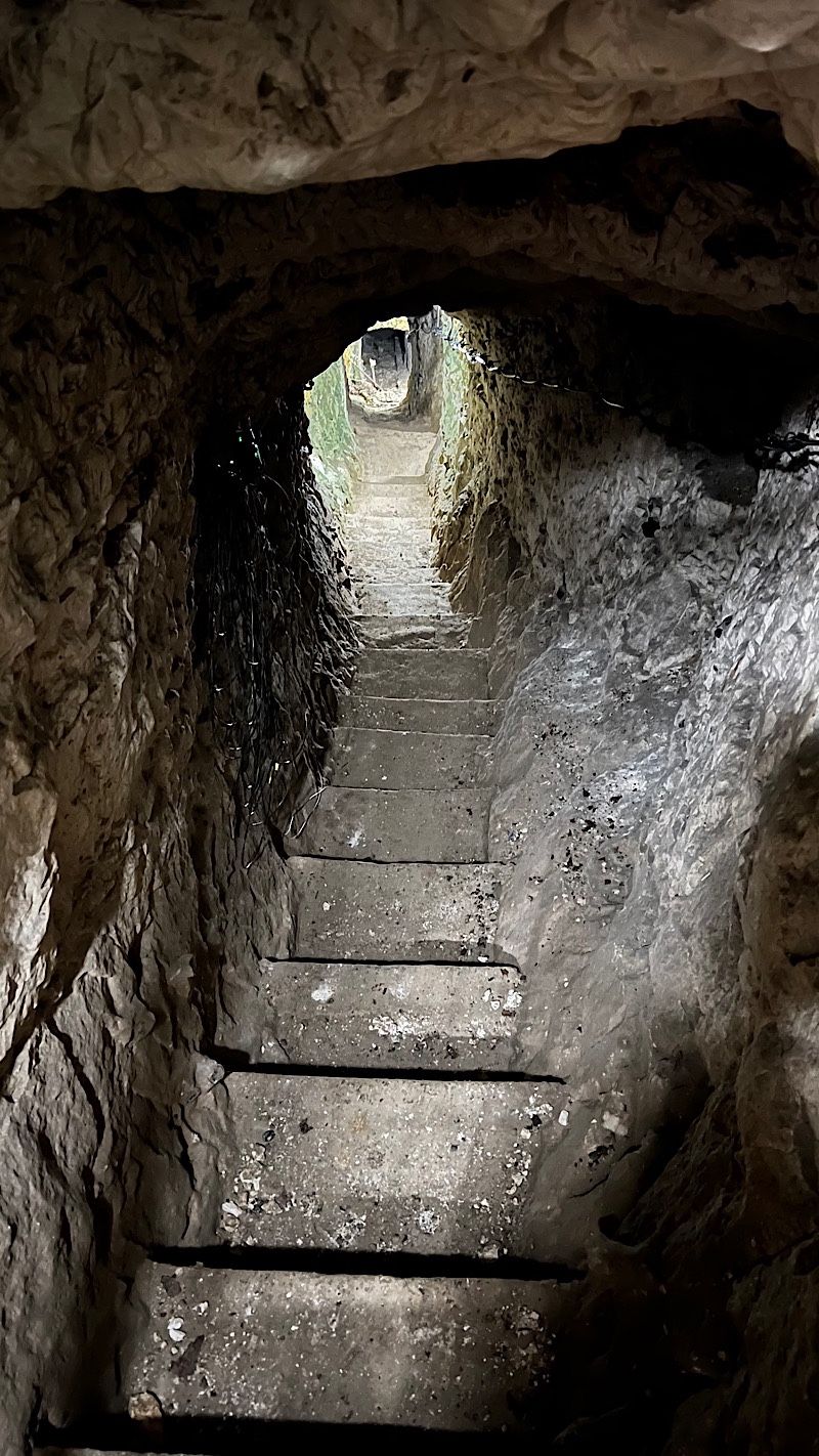 What I didn’t understand before our tour was that there was an entire underground war fought here. Once the armies decided to dig trenches in which to live and from which to wage war, each side also began digging tunnels toward the opposing trenches, with the purpose of planting and detonating explosives BELOW the trenches. It could even mean that opponents could meet underground while digging toward each other, and engaging in hand-to-hand combat in dark narrow tunnels, using only the shovels and picks that were their work tools. It’s terrifying to contemplate.
