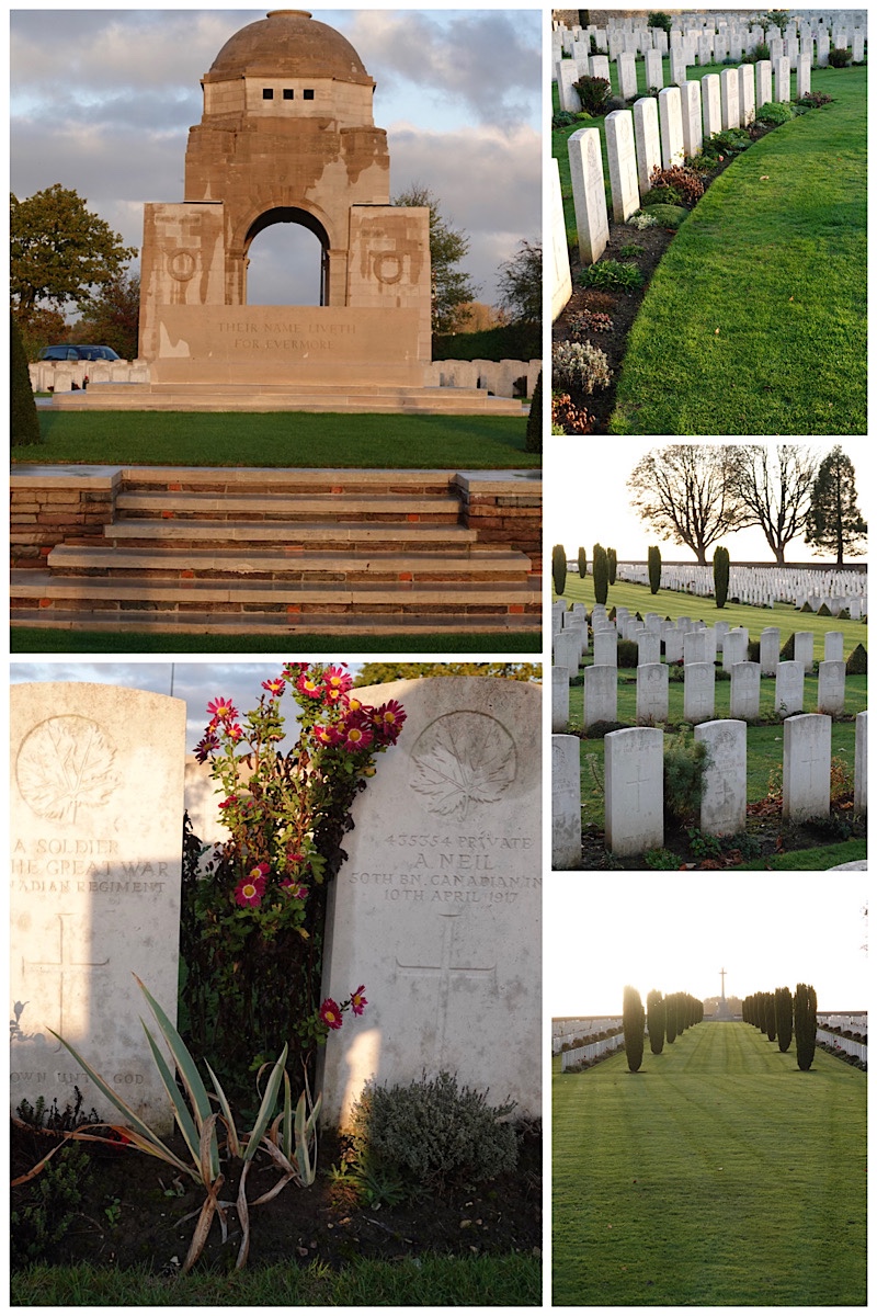 We were fortunate to drive past the Vimy Memorial again just at sunset, to see how the white stone turns pink as daylight fades.