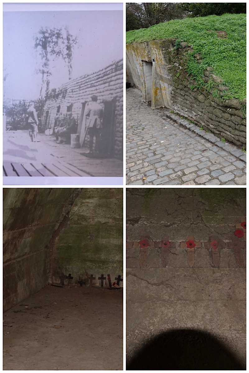 This British bunker (top) was built on a German bunker (on the right in the lower photo) to have a location that was hopefully safe from German tunnellers.