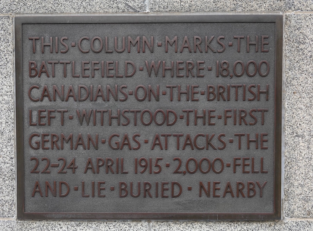 The “block” monuments are the same shape and size at all 8 Canadian memorial in Flanders, with the exception of Vimy Ridge and the Brooding Soldier. The pale granite comes from Stanstead Quebec,