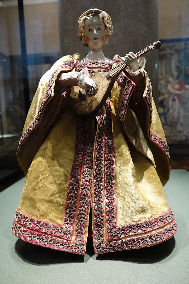 Painted wood, iron, linen and silk brocade Cittern Player automaton made in Spain in the late 16th century. the Habsburgs were also rulers in Spain for a while.