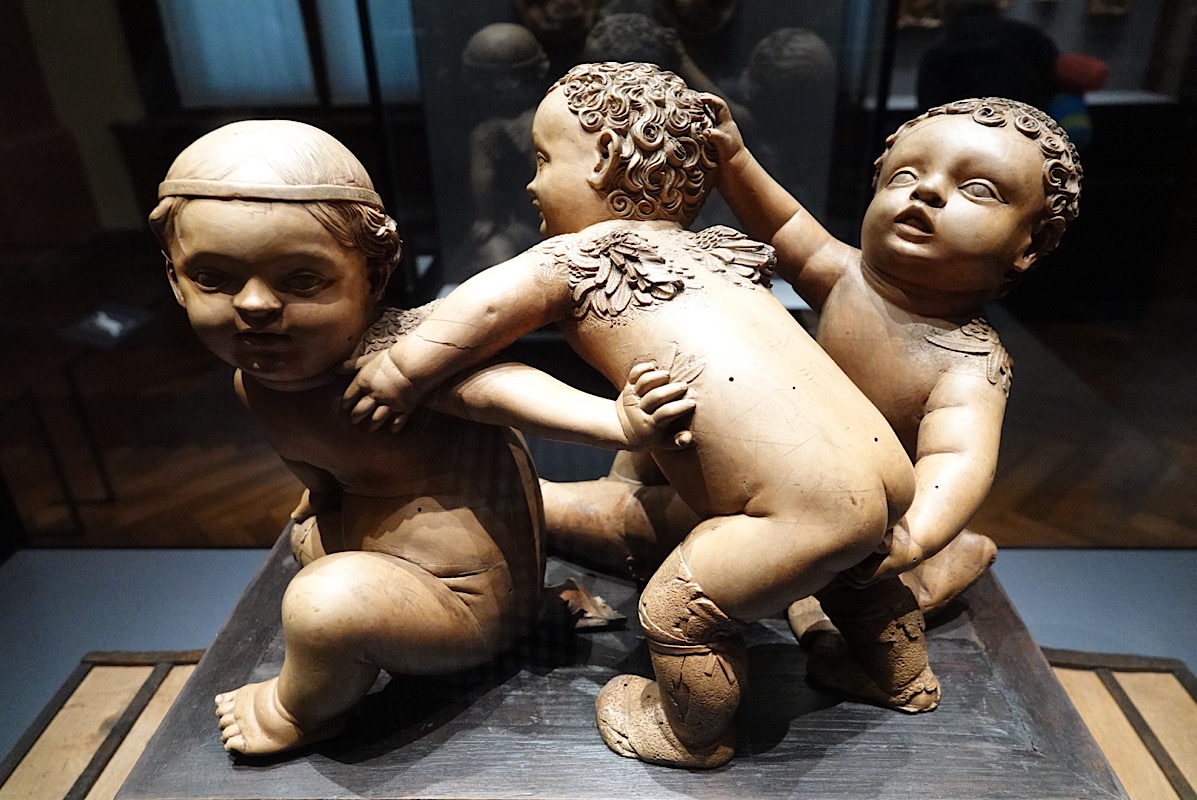 These seemingly innocent playing cupids made in Ulm around 1520 are actually supposed to reflect the erotic passions of adults. notice that the cupid on the left appears to have a devil’s tail.