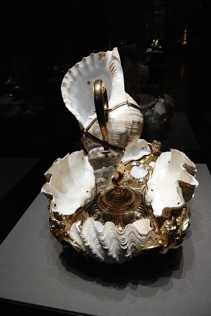 An ornamental basin and ewer made of triton, giant clam and scallop shells with gilded silver by Abraham Pfleger of Augsburg in 1590.