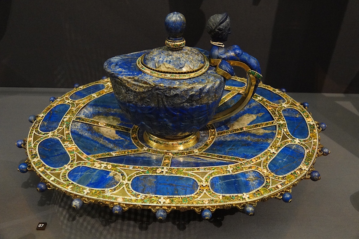 A lapis lazuli platter and teapot made in Prague in the late 16th century.