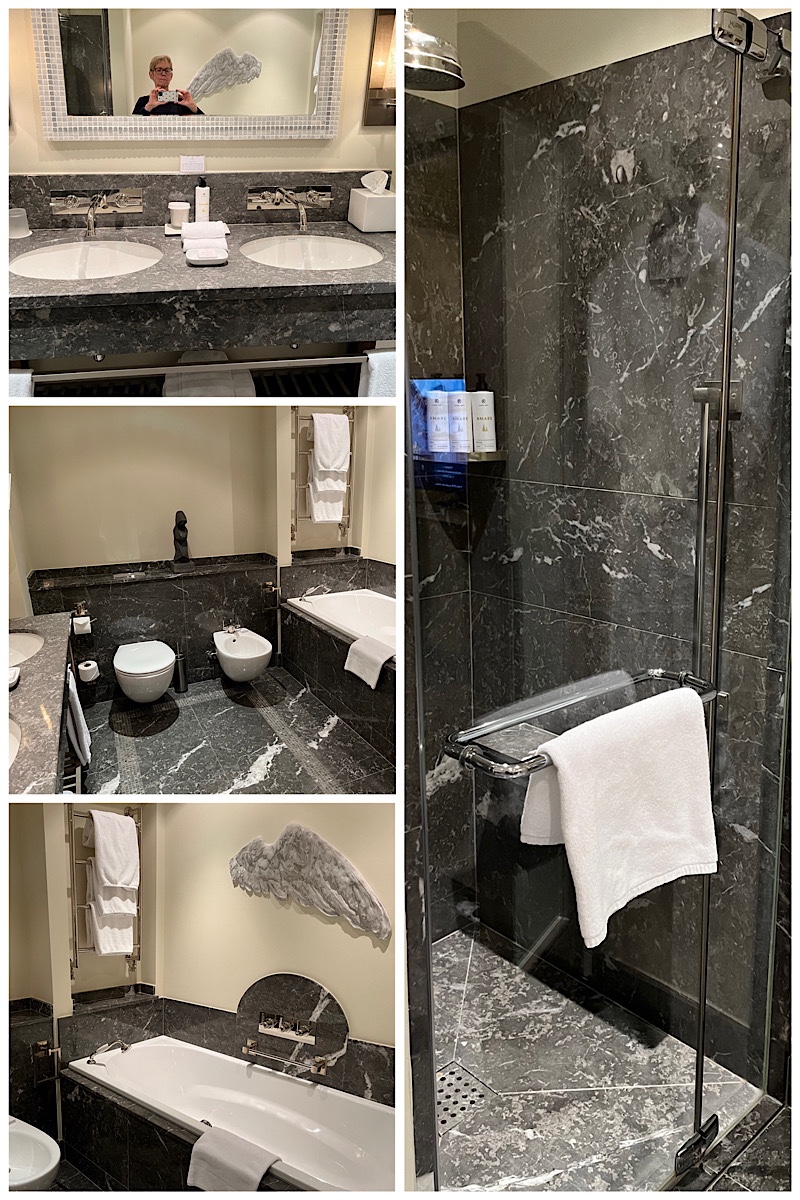 Our first impression of Prague’s spire-filled skyline, even coming in with snow and cloudy skies, was “wow”… and then we got to our hotel in an old Augustine monastery, with its own brewery, restaurant, and a gleaming modern bathroom. The front desk gave us “welcome Prosecco” while checking us in, the receptionist accompanied us to our room to get us oriented, and the young bellman effortlessly hoisted our large bag onto the ottoman at the foot of the bed. I really have to give Viking kudos for the hotels they’ve put us in on both of our extensions.