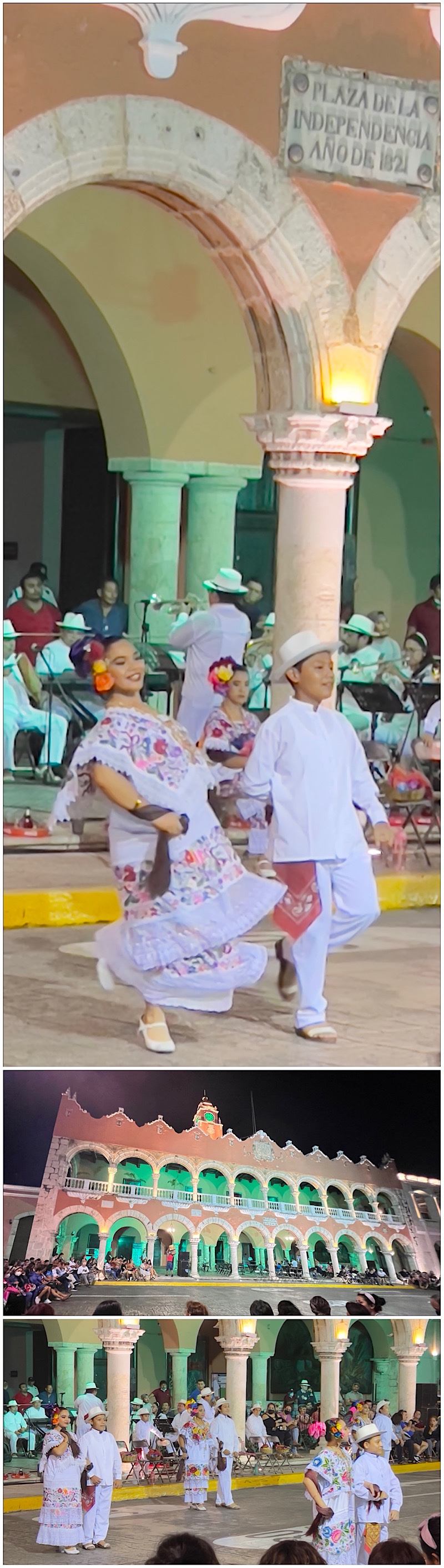 Tonight we headed to the Plaza Principal de Mérida (Plaza Grande) and the area in front of the Palacio Municipal (city hall) for “Vaqueria Yucateca”, advertised as a celebration of the town festivals dating back to the 18th century, presented by the Mérida City Council. A vaqueria is actually a dairy farm, so we weren’t sure what to expect. What we got was an hour of Yucatan folk dances by a wonderful young group of dancers.