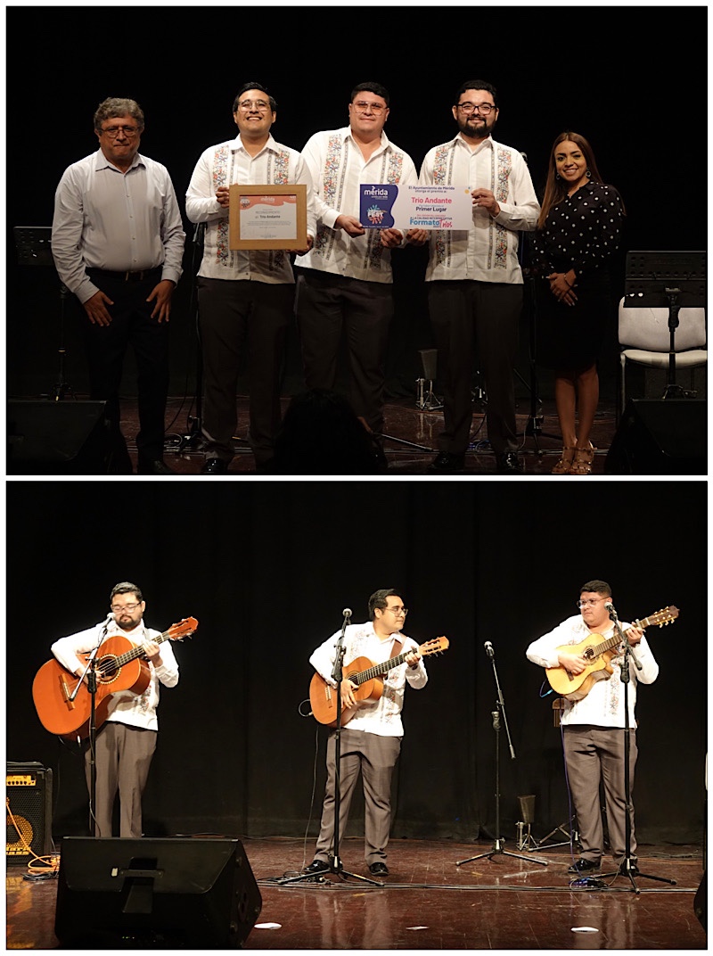 Tuesday, January 24th. Tonight was a special trova night at the Olimpo: the 3rd edition of the Interpretive Quality Award for Trio Format and 3rd edition of the Trova Yucatecan Composition Contest. It was a short program, beginning with presentations of the award certificates, followed by the first and second place winners in each category (plus the winner of best “youth”/new – under 40 – trova band) each performing a number.