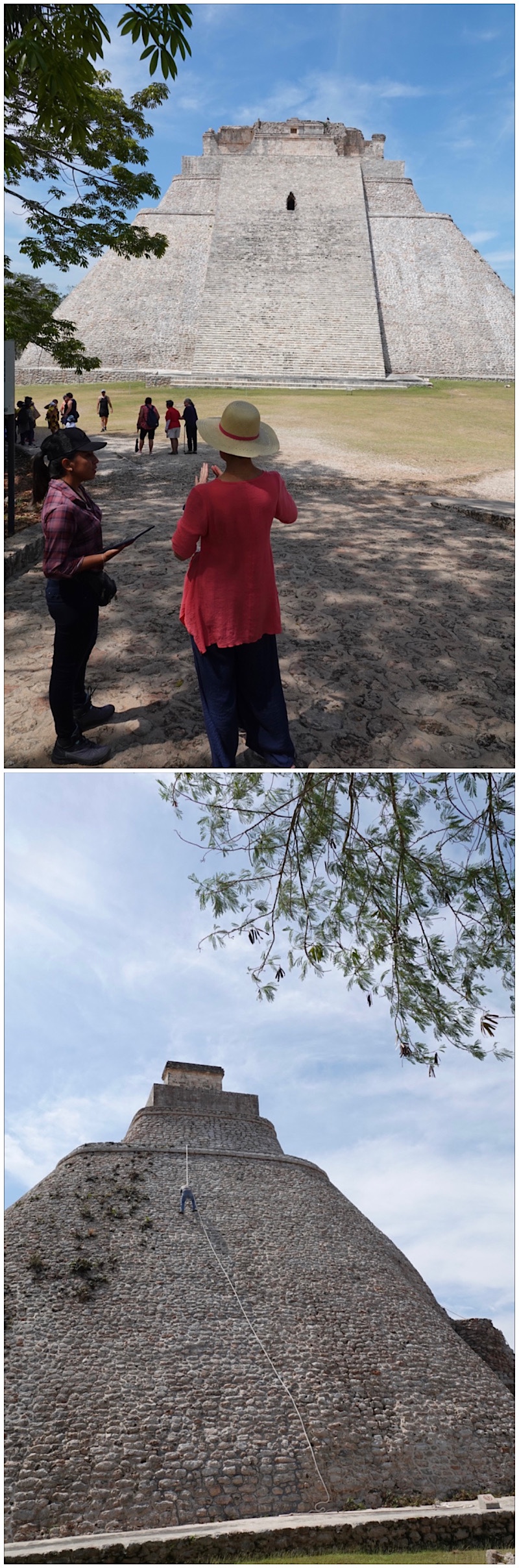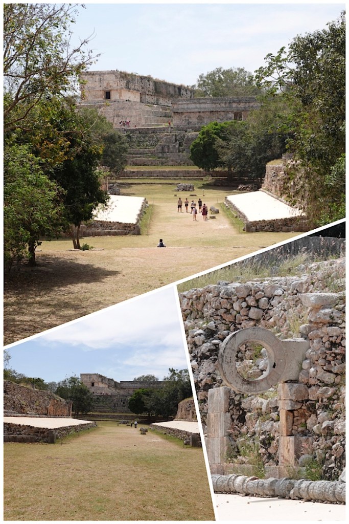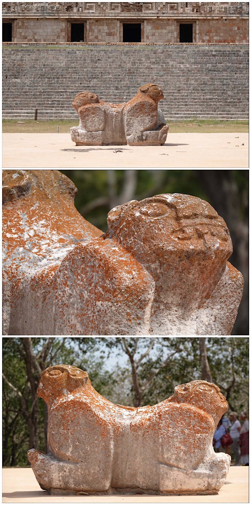 From the nunnery quadrangle we crossed through the ball court. Be still my beating heart! I was so excited about being at a REAL pok-ta-pok court that I completely embarrassed our young guide by gushing about the “my fuerte y muy sexy” (very strong and very sexy) players that do the demonstrations in Mérida. I guess old ladies aren’t supposed to get starry-eyed about young men.