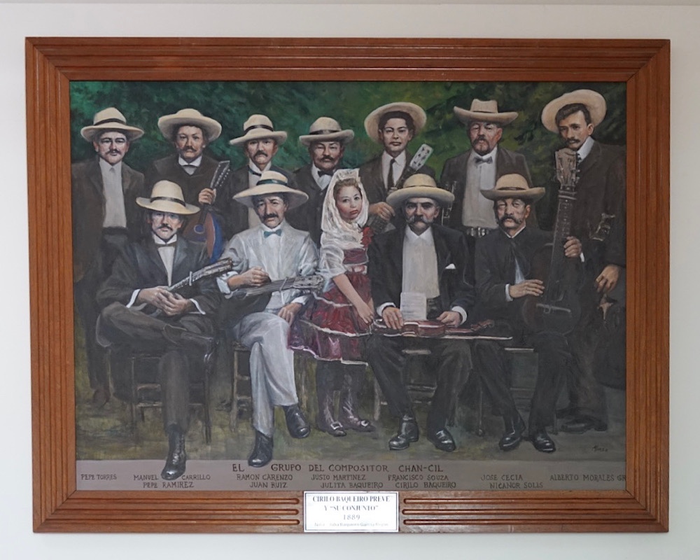Oil painting depicting Cirilo Baquero Preve and his “Group” (1889), displayed in the Museum of Yucatecan Song.