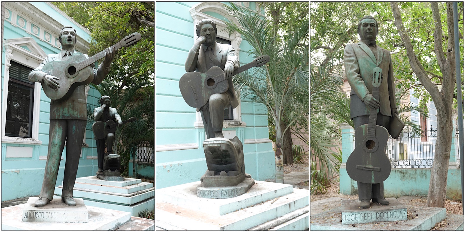 Outside the theatre, we were greeted by three life sized bronze sculptures bearing names we’d heard many times on Trova Tuesdays: Augusto “Guty” Cardenas, Ricardo Palmerin Pavia (the composer of La Peregrina), and Jose “Pepe” Dominguez.