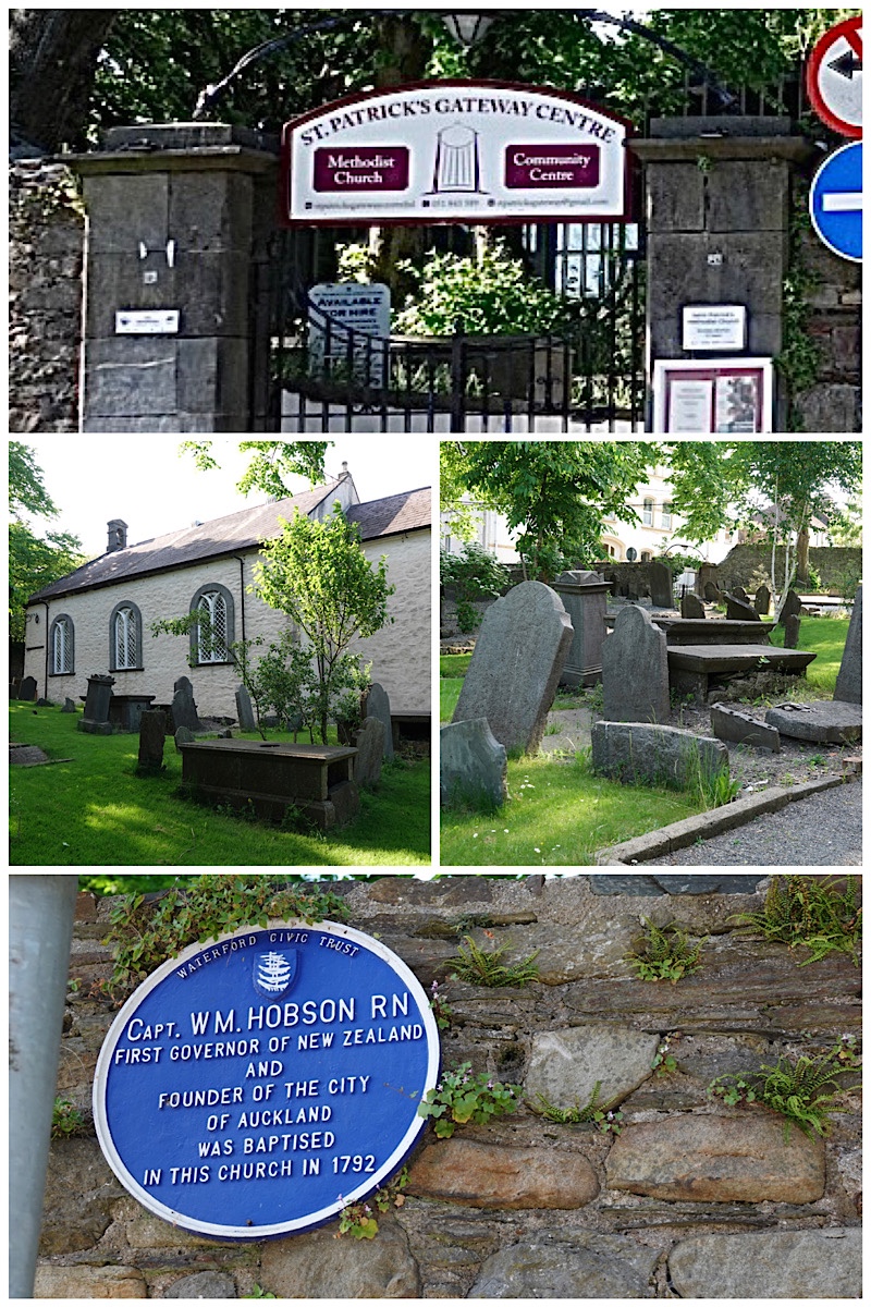 Our first priority was finding St. Patrick’s Gate. The site is now in disrepair, with its graveyard full of tumbled unreadable stones, and the small church now Methodist and still holding services, but for an almost non-existent congregation. The plaque beside the gate verified that baptisms were indeed being performed here in the 1700s.