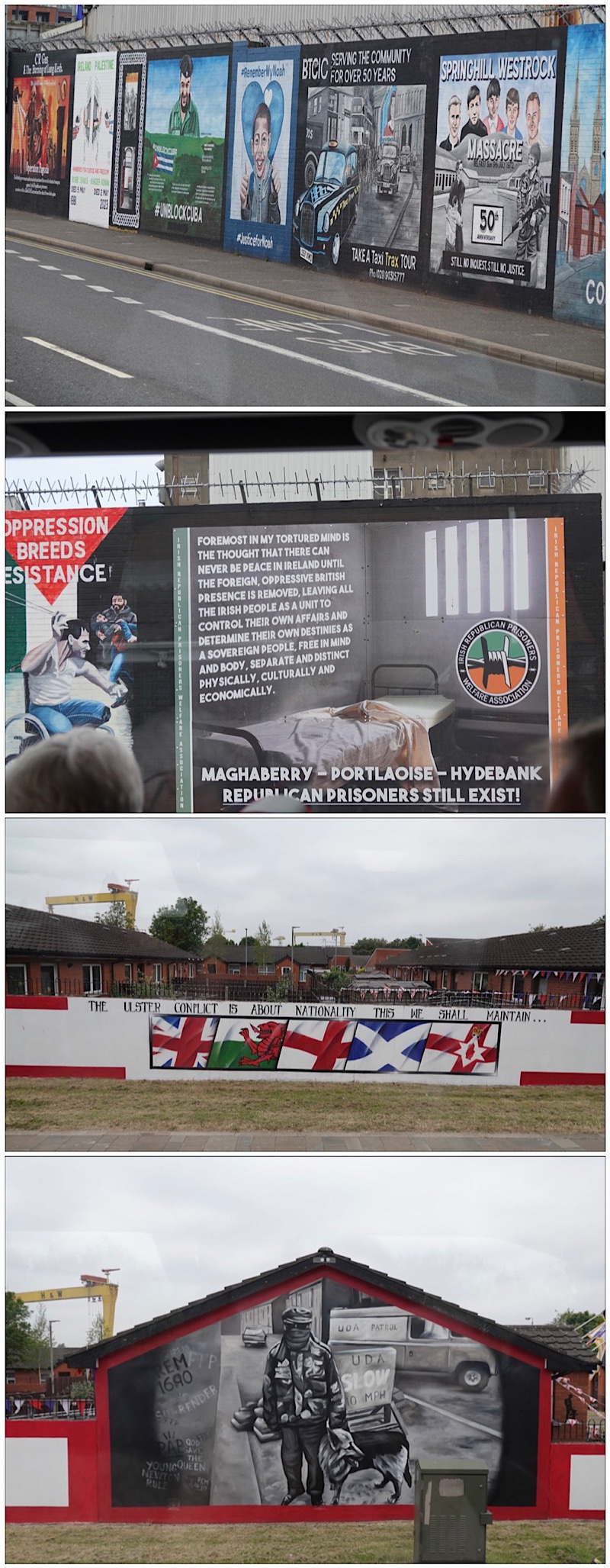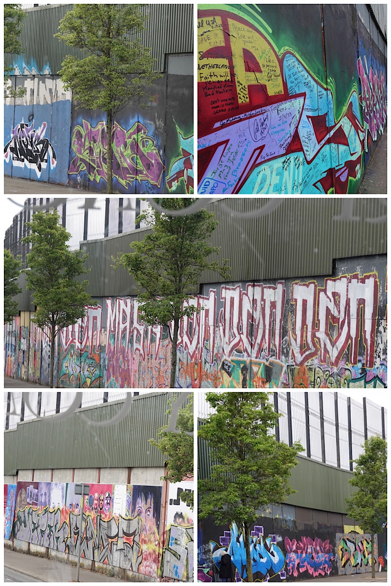 We were taken to a long section of the “peace wall”, erected to separate predominantly Protestant Unionist and predominantly Catholic Republican neighbourhoods and hopefully minimize violence between them. There’s a lot more information here: Peace lines Ireland.