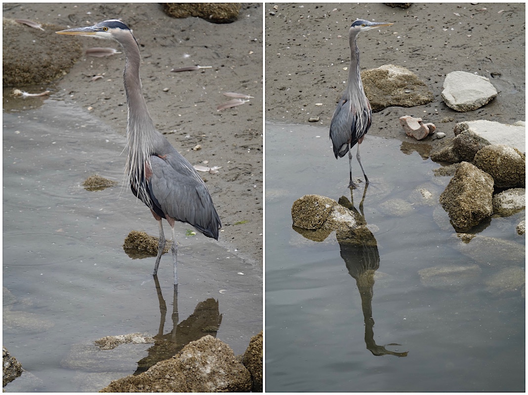 It was low tide, so the east end of Burrard Inlet in Port Moody was mud flats, populated by ducks, geese, and a lone blue heron.
