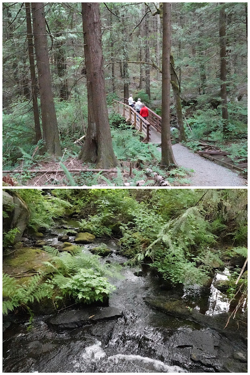 Day 3. With rain still in the forecast , we made sure to pack our rain jackets before heading to the town of Harrison Hot Springs, with stops at two of the area’s Provincial Parks: Bridal Veil, and Sasquatch. Our goal: to see some indigenous wildlife, hopefully a black bear, elk, eagle, and beaver.