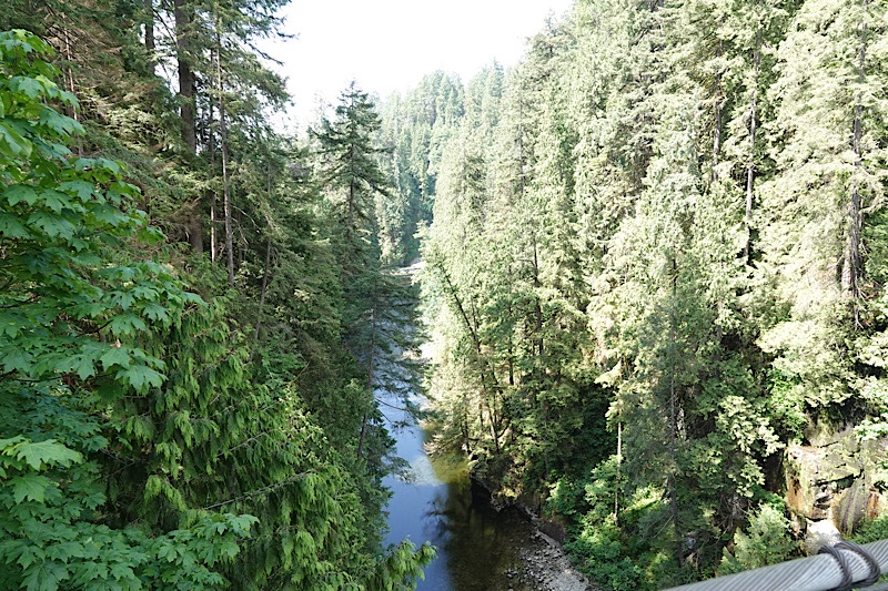 It turns out that the Capilano suspension bridge is actually far less scary than the one in Squamish, and we had a terrific time in the treetops and at the cliff’s edge. The day was enhanced by a surprise change in the weather forecast: sunny and 19°C/66°F, which was absolutely perfect for our outing.
