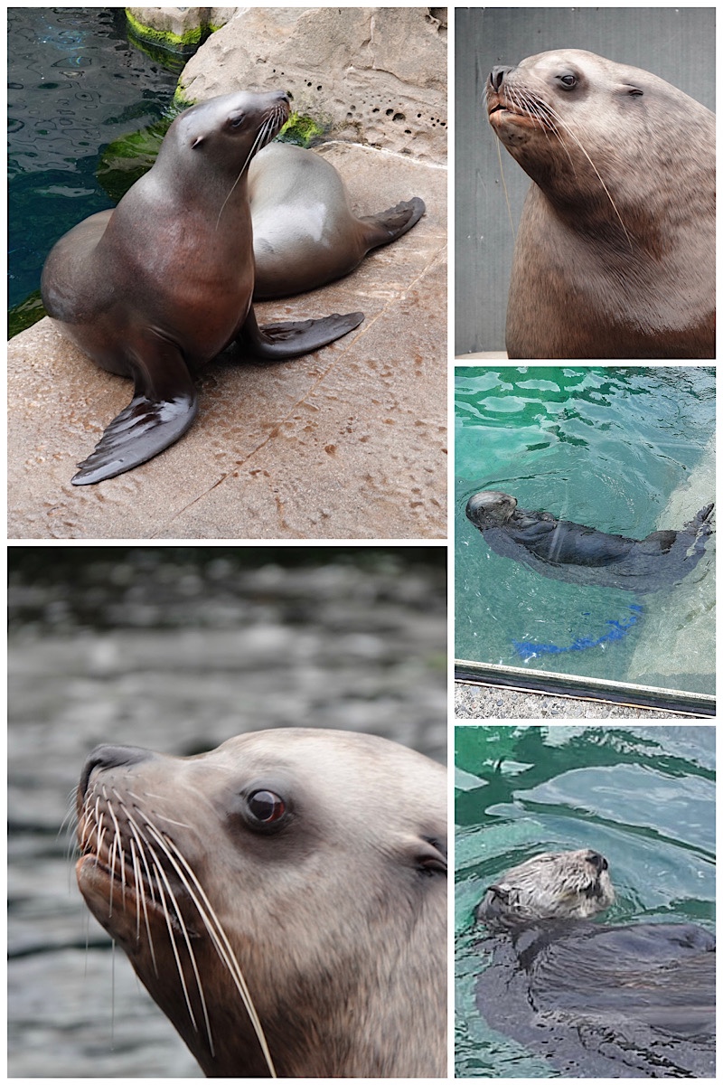 Once upon a time (when we visited 20 years ago), the aquarium had beluga whales. Whales and other large aquatic animals are no longer being kept in captivity, unless they’ve been injured and are being treated before being released. Even the fish swimming around the tanks here have mostly been born here, and not taken out of the wild. There are, however, several sea lions and two otters currently at the aquarium who for various reasons would not survive in their natural habitats; they’re being well fed and cared for, and provide many learning opportunities for visitors here.