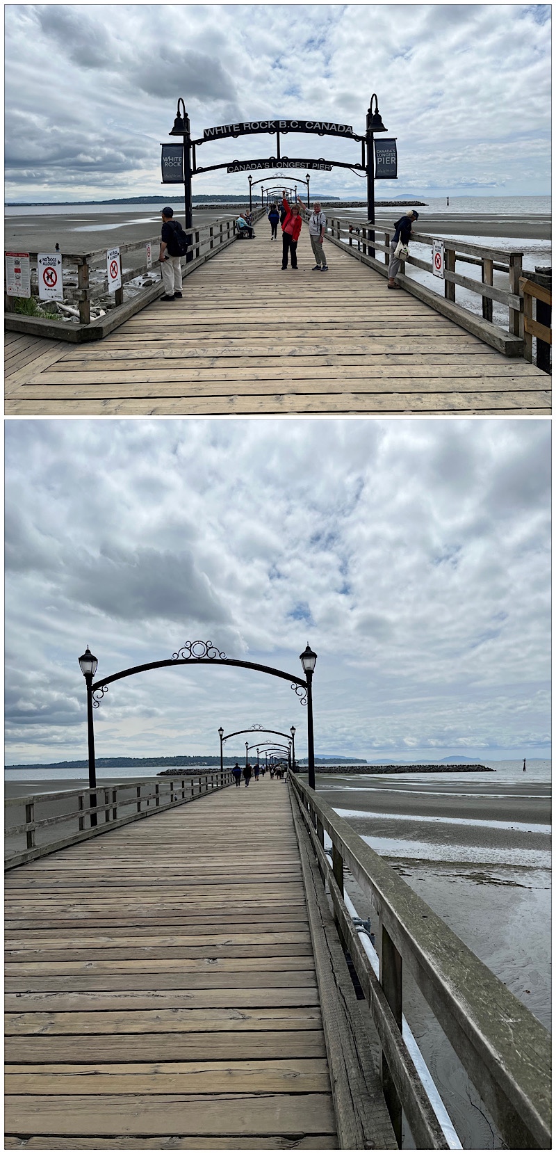 The 470 metre/1,540 ft long White Rock Pier, one of the longest in Canada, dates back to 1914, when it was a dock for steamships that arrived when the Great Northern Railway began operation. It was long touted as the longest pier in the country, but apparently a marina pier in Portneuf Quebec is almost twice as long. Still, it is impressive (and the sign remains, since it may well be the longest wooden pedestrian use only pier in Canada.