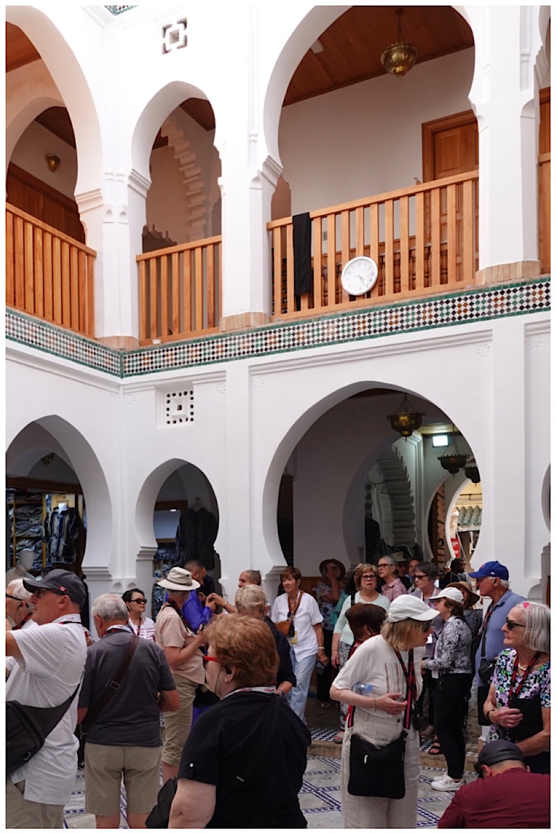 One of the shops we visited in the Grand Souk catered exclusiveky to men’s fashion, selling a wide variety of djellabas. The shop was originally a “caravanserai” : a hostel for travelling merchants, with a lower courtyard for animals, booths for selling goods, and upper sleeping chambers.