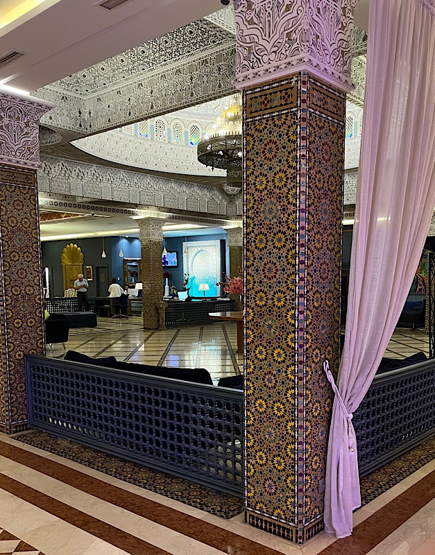 Our accommodation in Meknes is the 5 star Hotel Zaki, with an incredibly impressive entryway and lobby,ornately decorated in Moroccan carved cedar, mosaic tile, enamel, and bronze.